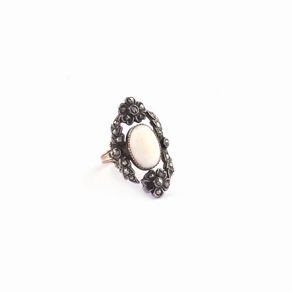 con opale arlecchino al centro, misura 11 , peso 4.9 gr.