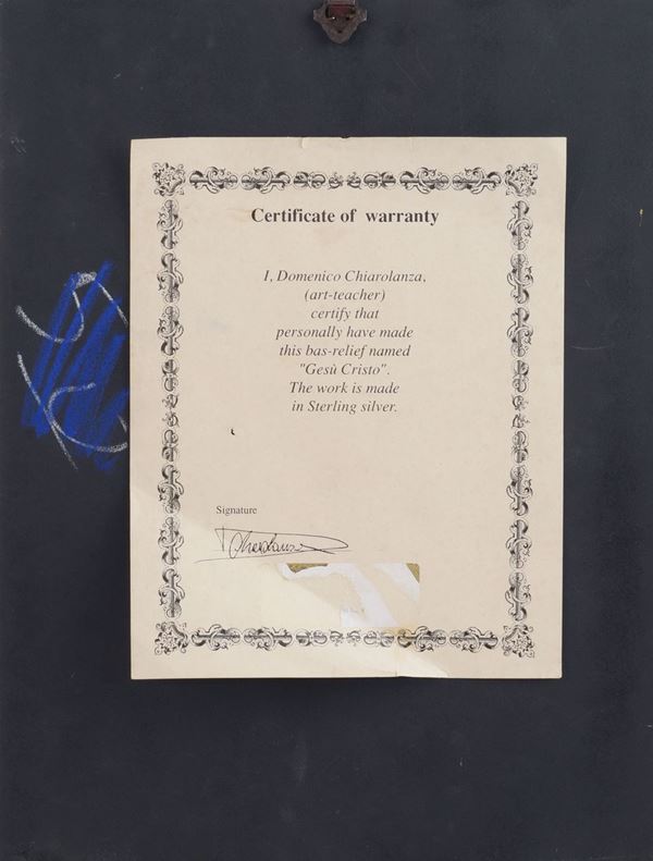 raffigurante Cristo con la corona di spine, firmata Domenico Chiarolanza, entro cornice in legno  , 29x22 cm.