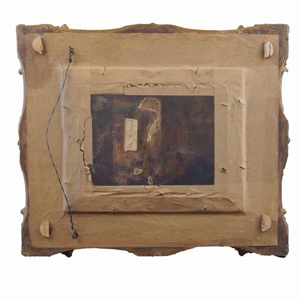 "La proposta", olio su tela, firmato "R. Stone" in basso a destra, entro cornice in legno dorato, 19x15 cm.