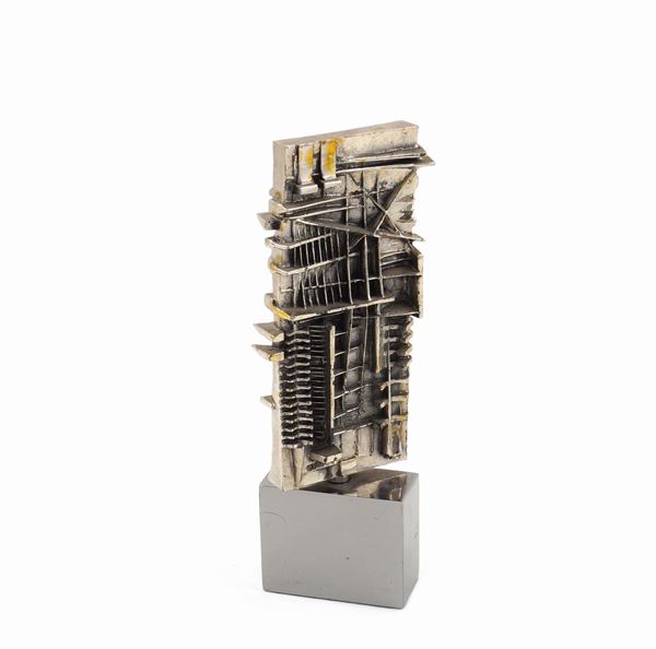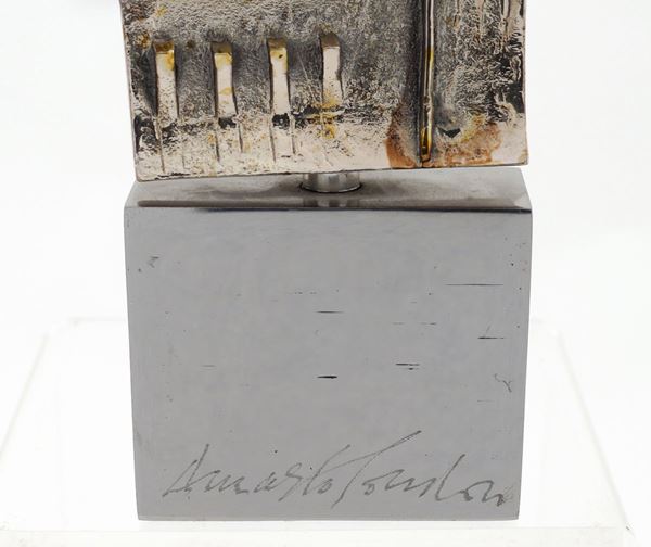 "Stele", scultura in bronzo, es. p.a., firmata sulla base , 17,6x6,5 cm.