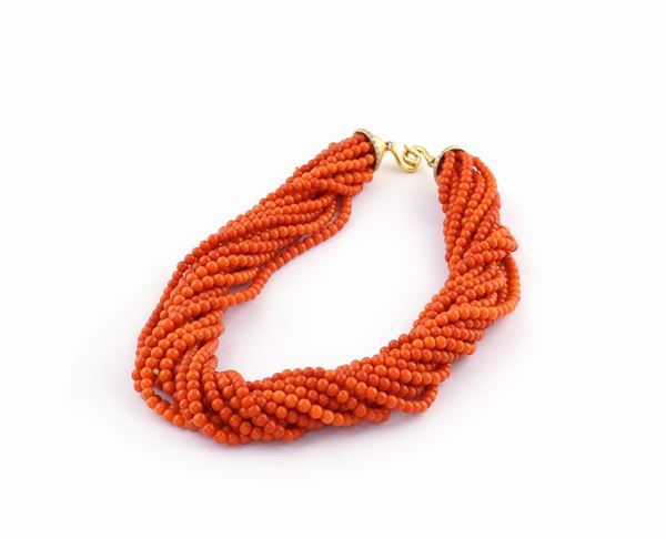Collier torchon in oro giallo 18kt e corallo