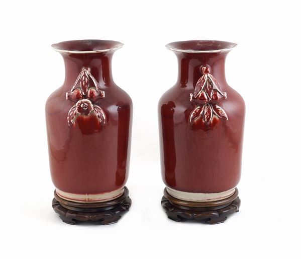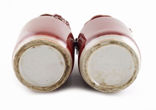Coppia di vasi in ceramica monocroma sangue di bue