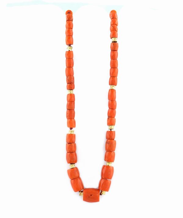 Filo di corallo sardo rosso a barilotti sfaccettati