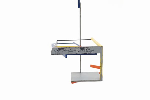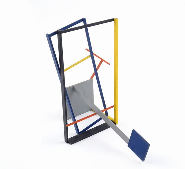 "La casa di El Lisitsky" anno 1983, scultura in alluminio dipinto in policromia, es. 0/10, titolo,anno e firma sotto la base, 21x21x15 cm.