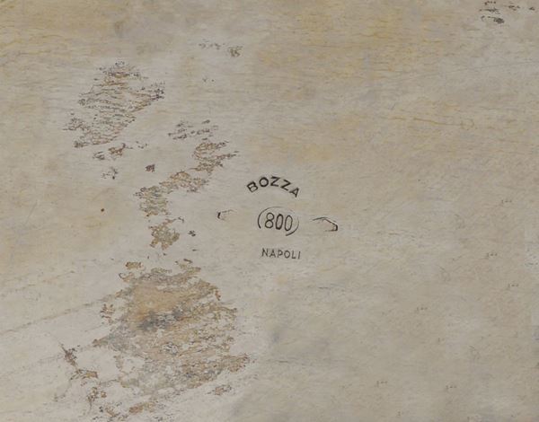 argentiere Bozza, Napoli, di forma ovale sbalzato e decorato con motivi floreali e vegetali, poggiante su quattro piedini a voluta, peso 2.345 gr. , 19x51x29 cm.