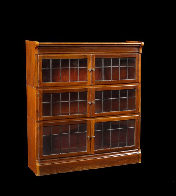 fronte a sei sportelli a vetri decorati con griglie in legno, lievi difetti, 102x89x26 cm.