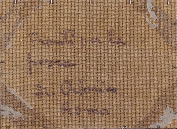 "Spiaggia con pescatori", olio su faesite, firmato "P.Odorico" in basso a destra, 12X17 cm.