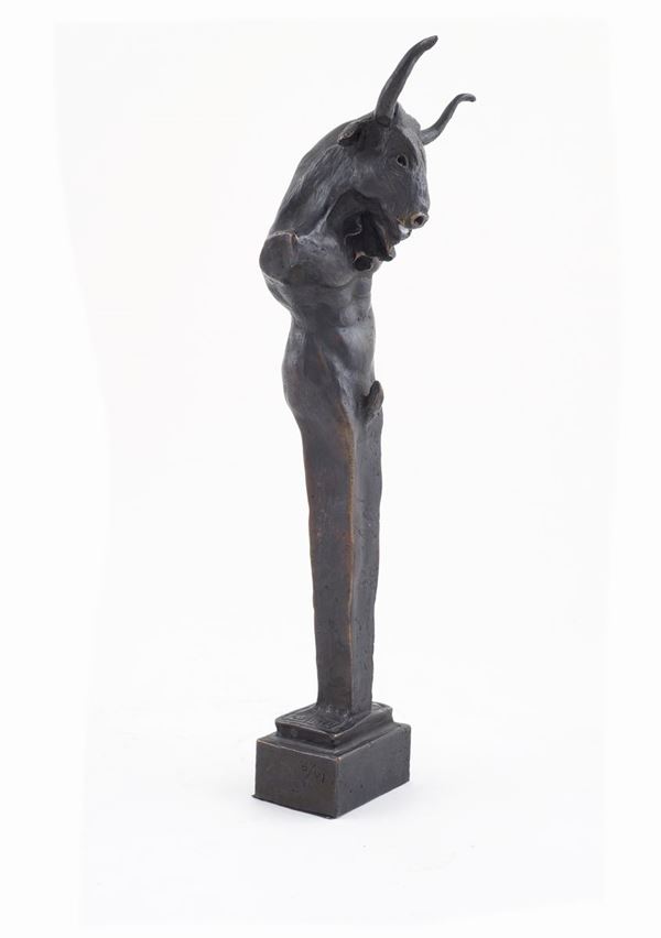 "Minotauro" scultura in bronzo patinato es. 6/VI siglato A.F., 35x9x8 cm.