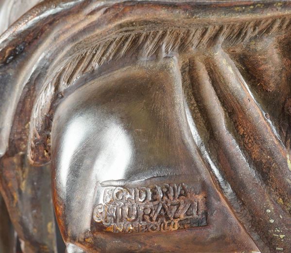 raffigurante il Perseo di Benvenuto Cellini, marchio della fonderia Chiurazzi - Napoli, poggiante su base quadrata in marmo bianco, h. 111 cm. (bronzo) , h. totale 231 cm.