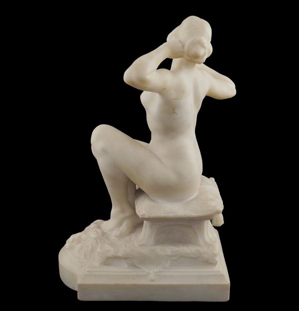 raffigurante una donna in stile art decò, poggiante su base sagomata , 43x27x20 cm.