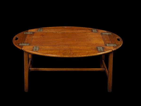 piano a vassoio con due manici poggiante su base rettangolare , 44x98x68 cm.
