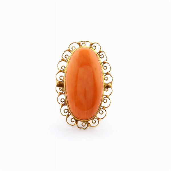 e corallo mediterraneo taglio ovale cabochon, misura 15A, peso 11.7 gr.