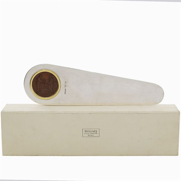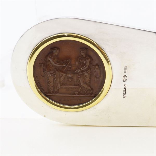 di forma ovale decorato con una medaglia napoleonica in bronzo del 1804, marchio e firma sul retro, entro scatola originale, l. 20.5 cm. r, peso lordo 270 gr.