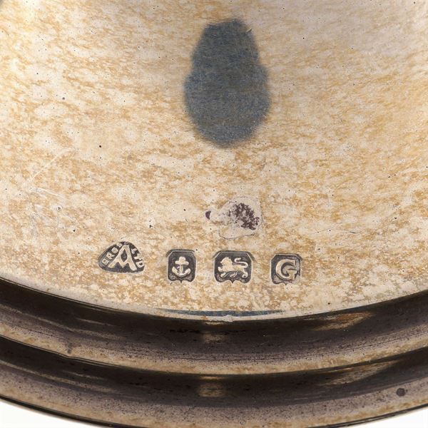 di forma circolare a corpo liscio, lievi difetti, completo di pennino vintage Omas, h. 6,5 cm. x d. 10 cm. e, peso lordo 270 gr.
