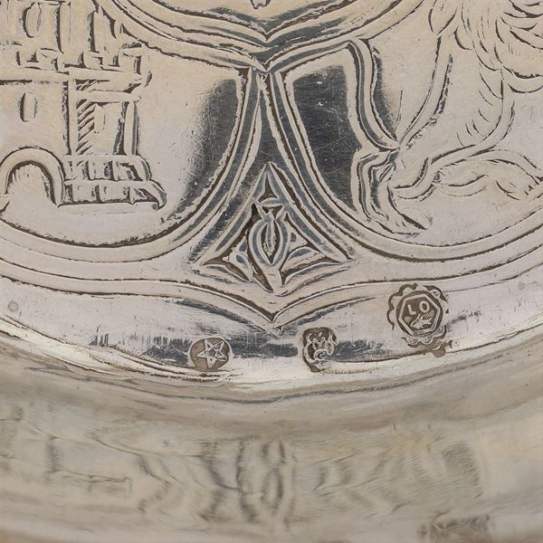 di forma circolare a corpo liscio centrato da uno stemma nobiliaree, peso 135 gr.