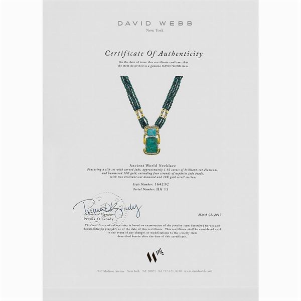 Completo di certificato di autenticità David Webb modello n. 16423C - serie n. HA 153, peso 104,9 gr.