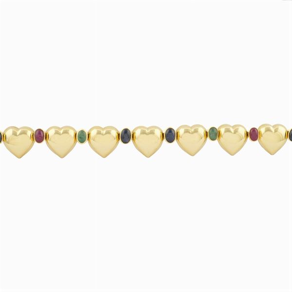 alternati da smeraldi, rubini e zaffiri taglio cabochon, lunghezza cm. 42_, peso 28,9 gr.