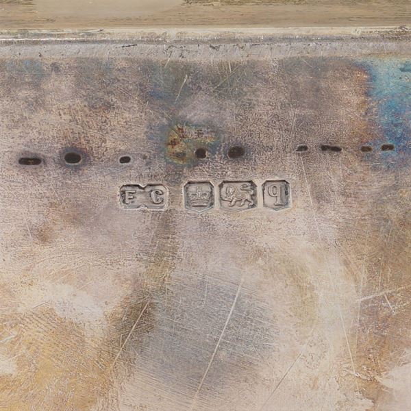 cesellato con motivi Deco', orafo Frank Cobb & Co, marchi territoriali, di garanzia e dell'argentiere impressi sotto la base, 63x40 cm.
