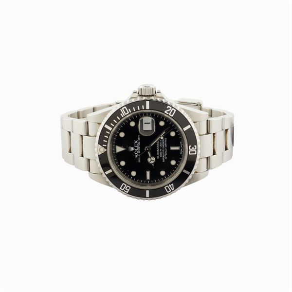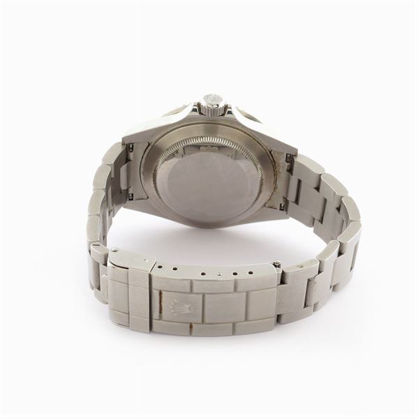 orologio da polso in acciaio, cassa tonda mm. 40, quadrante nero con indici e datario ore 3, ghiera girevole, movimento a carica automatica, n. serie movimento 33065353, calibro RX3135, fondello ref. 2160, bracciale originale Rolex modello Oyster con chiusura deployante i