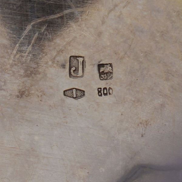 orafo Jacomino Ciro, di forma circolare, corpo liscio con manico sagomato e presa ad anello, 29,5x16 cm. ., peso 720 gr.