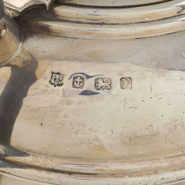 a corpo liscio, manico e presa del coperchio in legno ebanizzato, S.W. Smith & Co, h. 11 cm.p, peso 280 gr.