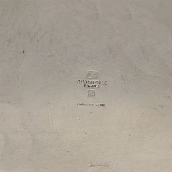 in metallo argentato con manici in metallo e legno?, 17x16 cm.
