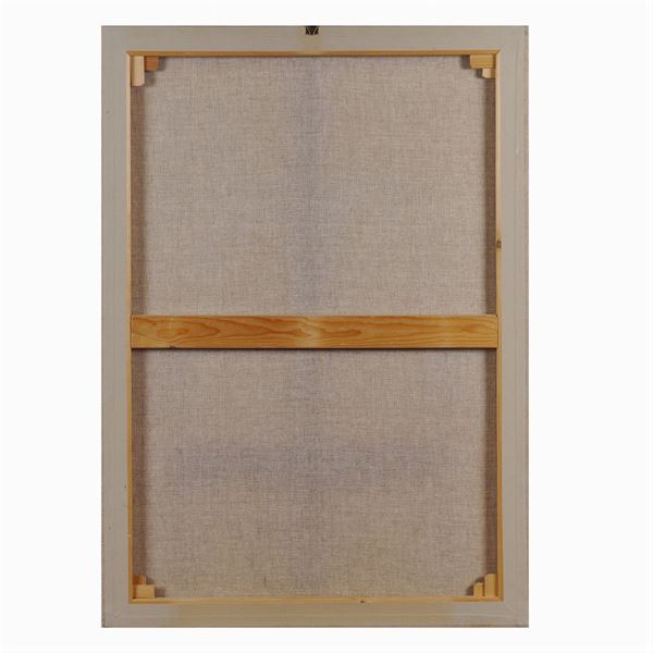 "Senza titolo", carta applicata su tela, firmato e datato 1987 in basso a destra, entro cornice. Dichiarazione d'autenticità dell'artista su foto e, 100x70 cm.