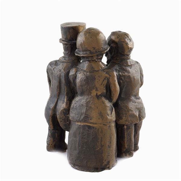 "Personaggi", scultura multiplo in bronzo, es. 27/100, firmata sul retro, certificato Selfart s.r.l.a, h. 20 cm.