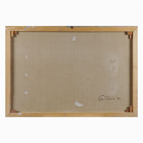 "Superficie astratta blu celeste", 1980, acrilico su tela, firmato e datato sul retroe, 75x100 cm.
