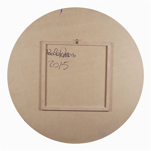 "Luna azzurra", 2015, tecnica mista su tavola, firmata e datata sul retro.