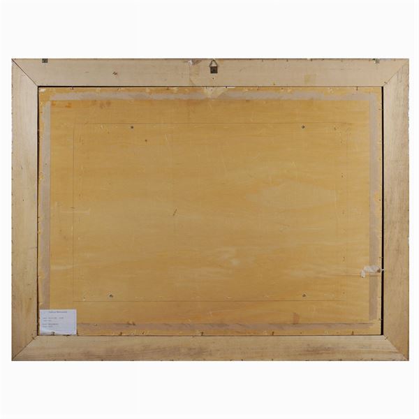 "Gallo", olio su masonite, firmato in basso a destra, entro cornice.