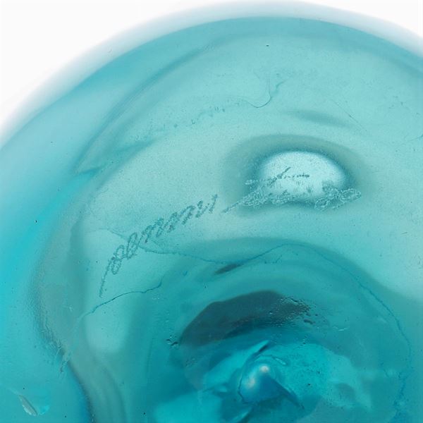 vaso serie Bolle, in vetro policromo soffiato e realizzato a mano con la tecnica detta dell' “incalmo”, che consiste nella saldatura a caldo di due soffiati aperti., firma incisa sotto la base Venini Italia 89