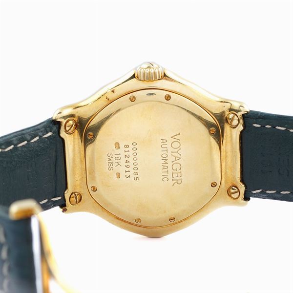 orologio da polso fine serie in oro giallo 18kt, cassa tonda mm.38, vetro zaffiro, quadrante smaltato con mappa del mondo e datario ore 3, ghiera girevole per fuso orario, ref. 8124913, movimento meccanico a carica automatica Eta 2892-2, marcato Ebel 124, cinturino in pelle con chiusura originale deployante in oro giallo 18kt