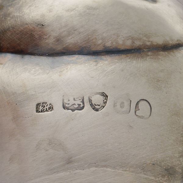orafo Jonathan Hayne (1823 - 1836), base circolare, corpo piriforme decorato con motivi floreali e vegetali poggiante su base sagomata, coperchio con presa a motivo di rosa, lievi difetti, 17x29 cm., peso 800 gr.