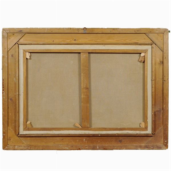 "Gioco di putti", olio su tela, entro cornice, 70x106 cm.