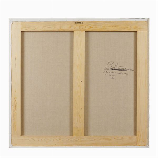 "I colori del ricordo", olio e tecnica mista su tela, 2003, titolo, firma e data sul retro, 92x100 cm.