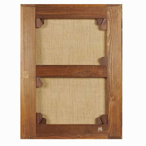 "Senza titolo", 1975, tecnica mista su carta applicata su tela, firmata e datata in basso a destra, entro cornice, 46,5x39 cm.