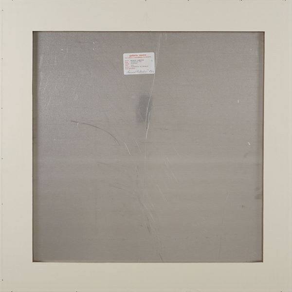 "Dessin de Feu circulaire", fiammiferi bruciati su lastra di metallo, 1973, entro cornice. Opera archiviata con il n° DFEC37 1000120523, 90x90 cm.