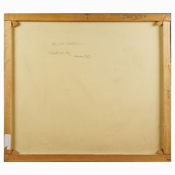 "La chute", olio su tela, 1967, firmato e datato in basso a destra, titolo e firma presenti anche sul retro, entro cornice. Autentica dell'artista su foto, 90x100 cm.
