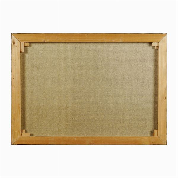"Paesaggio con nebbia", olio su tela, firmato in basso a destra, entro cornice, 50x70 cm.