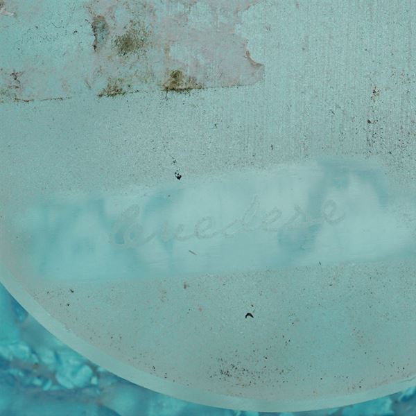 in vetro satinato nella tonalità del turchese, firma sotto la base, 20x23,5 cm.