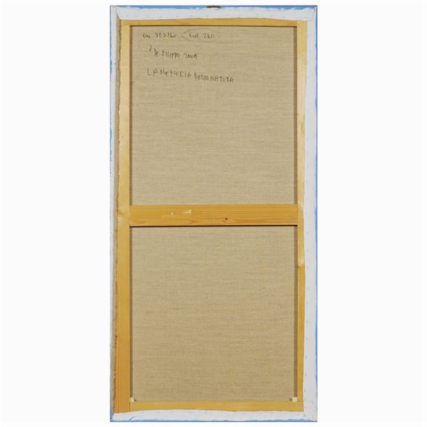 "La memoria della natura", acrilico su tela, anno 2005, firma e titolo sul retro. Opera archiviata con il n. 3698FFOO05, certificato su foto, 160x80 cm.