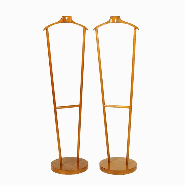 in legno di faggio, poggianti su basi circolari, 160x50 cm.
