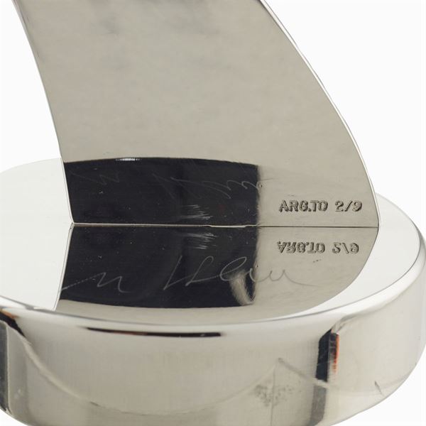 "Cambrè en errière", scultura in metallo cromato, 2007, es. 2/9, firmata sulla base. Autentica della galleria ABC Arte di Genova, h. 44,5 cm.