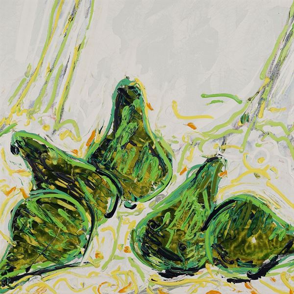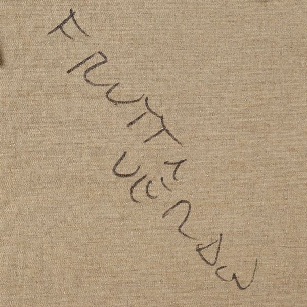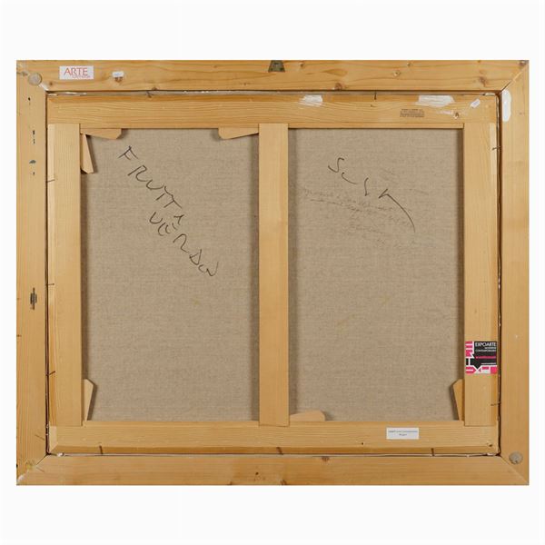 "Frutta verde", smalto e acrilico su tela con cornice invasa, 1985, firma e titolo sul retro.