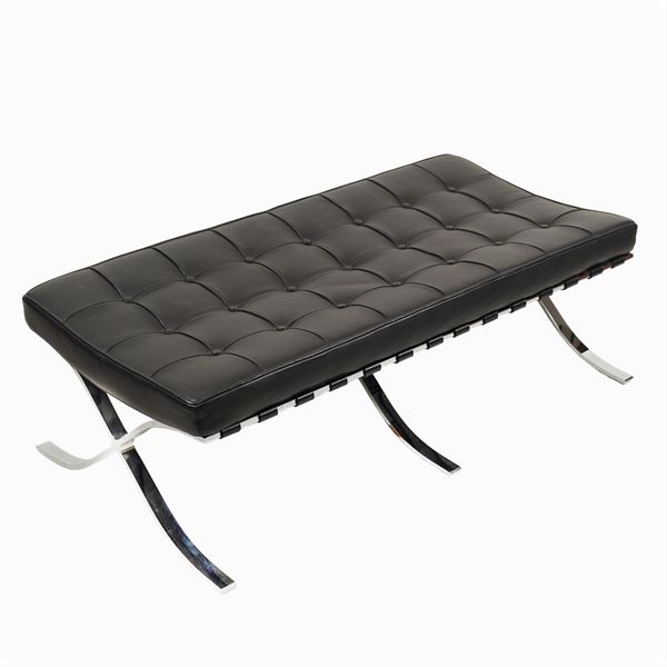 struttura in acciaio cromato, seduta imbottita e rivestita in ecopelle nera, 38x116x55 cm.