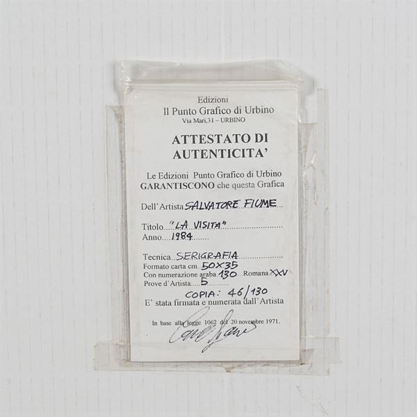 "La visita" serigrafia, es. 46/130, firmata in basso a destra, entro cornice, 35x50 cm.