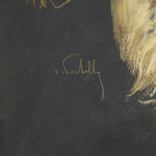 "Testa di cane da caccia", pastello su carta, firmato in basso a sinistra, entro cornice, 40x30 cm.