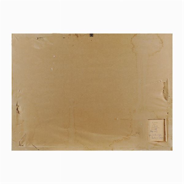 "Senza titolo", 1989, tecnica mista e collage su cartoncino, firmato e datato in basso a destra, firma per autentica al retro, gore in basso a destra, entro cornice, 50x70 cm.