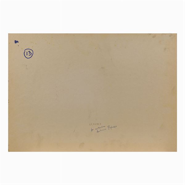 "Senza titolo", tecnica mista e collage su cartoncino, firmato in basso a destra, firma per autentica al retro, 48.7x 35.2 cm.